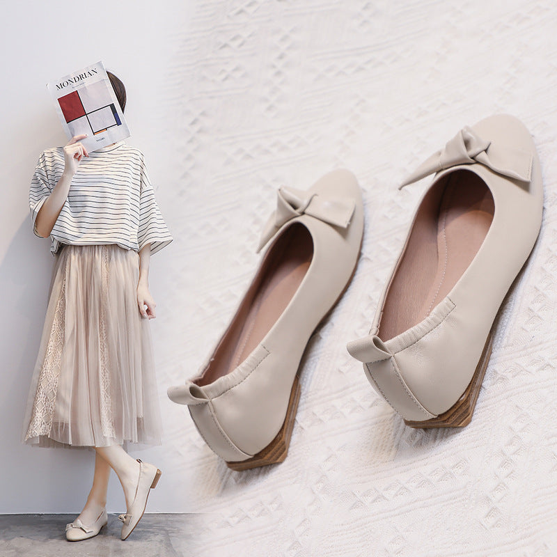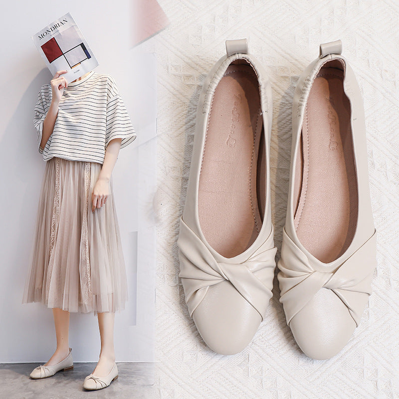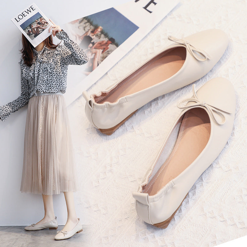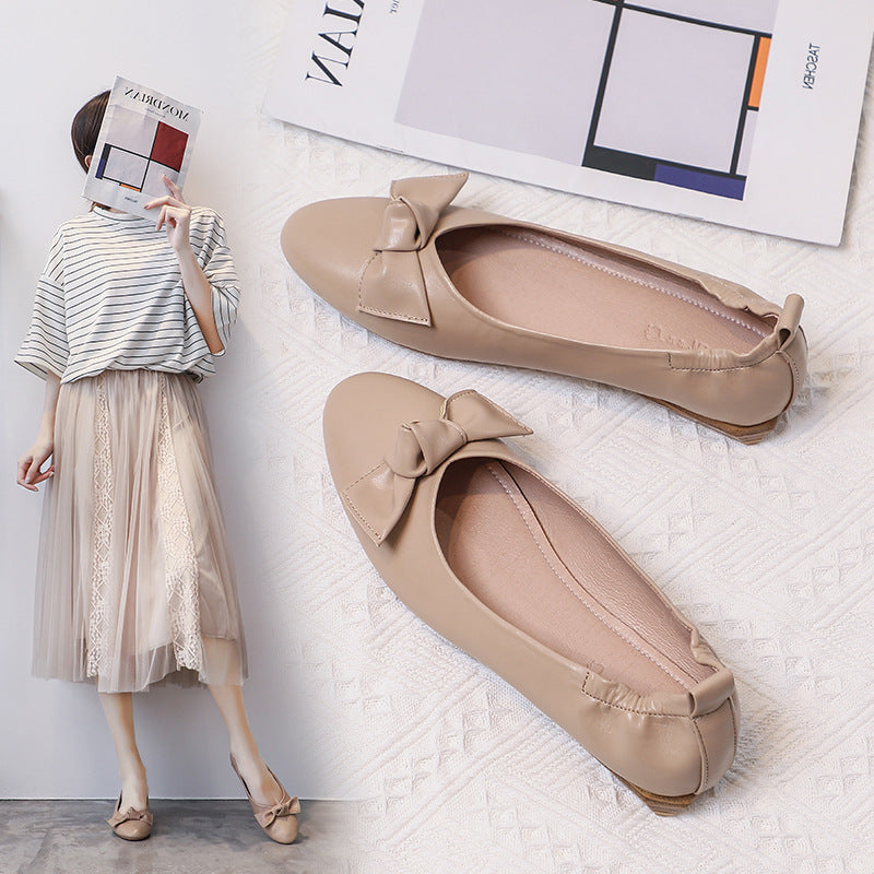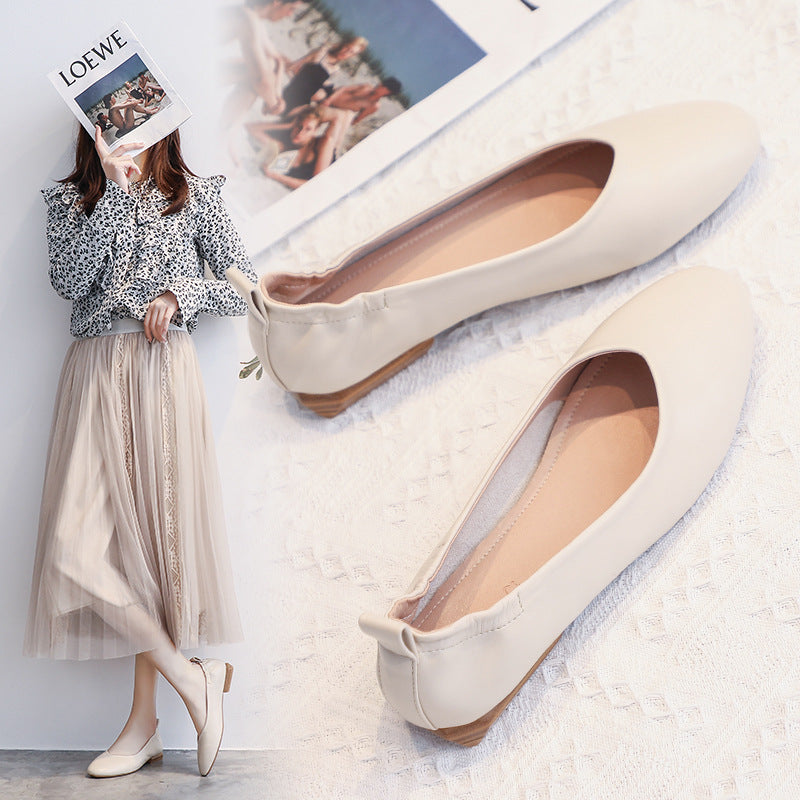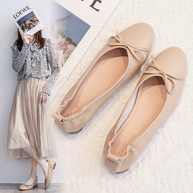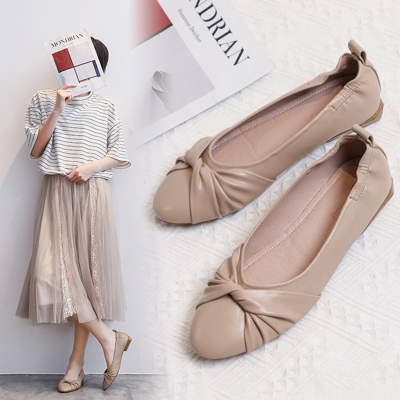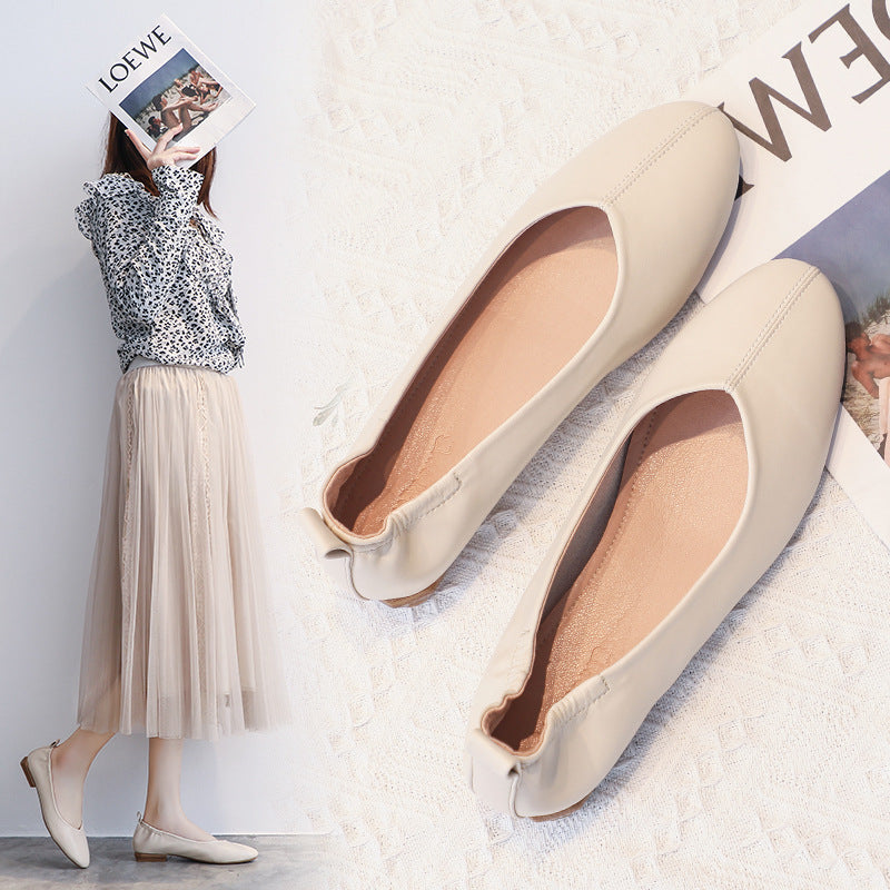 Leather Pea Single Shoes Women''s Summer Soft Bottom Flat Bottom Versatile
